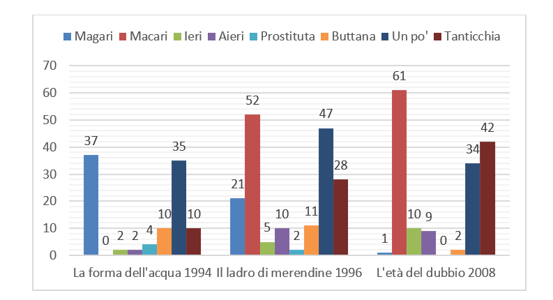 Nello specifico, l’analisi proposta riguarda due romanzi, La forma dell’acqua e Il ladro di merendine: in essa si focalizza l’attenzione su termini, verbi, aggettivi e particolarità dialettali che sono stati perduti o sono rimasti invariati nel passaggio dai volumi agli audiovisivi. Sono state evidenziate anche le minime differenze della trama che, sebbene sia stata generalmente lasciata invariata, ha subito dei lievi adattamenti al fine di risultare facilmente comprensibile anche per chi non ha mai letto i romanzi dell’autore.