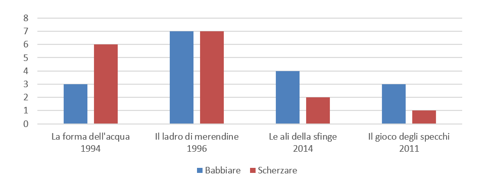 Nell’ultimo esempio riportato si può anche notare l’utilizzo del sostantivo “babbiata”: nonostante non abbia base comune con l’italiano, infatti, si è imposto come tipicità del lessico camilleriano.