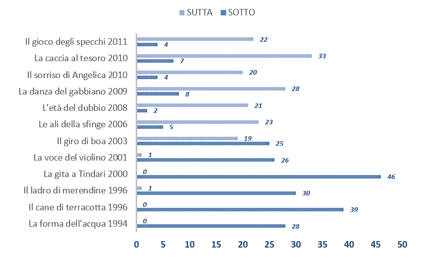 Il fulcro del contributo è rappresentato, dunque, dall’analisi linguistica dei due romanzi e delle loro trasposizioni: vi sono proposti confronti diretti circa l’impiego di vocaboli appartenenti al dialetto siciliano o al linguaggio camilleriano. Nella relazione tra romanzi e film, la lingua risulta essere, infatti, il tratto più identificativo e distintivo dell’autore: Camilleri, come autore nella stesura dei suoi romanzi e sceneggiatore nella trasposizione degli stessi, ha lavorato preservando la particolarità del proprio linguaggio, semplificandolo ma non modificandolo, come ha dichiarato in numerose interviste. Infatti, sebbene nella trasposizione, dal punto di vista contenutistico, vengano variate o invertite alcune scene del romanzo, ciò che resta immutato, quantomeno nella maggior parte dei casi, è la lingua. Il lavoro più impegnativo, dunque, è stato quello di semplificazione di un codice linguistico non accessibile alla totalità del pubblico, ma sono state preservate le basi sulle quali esso è fondato.