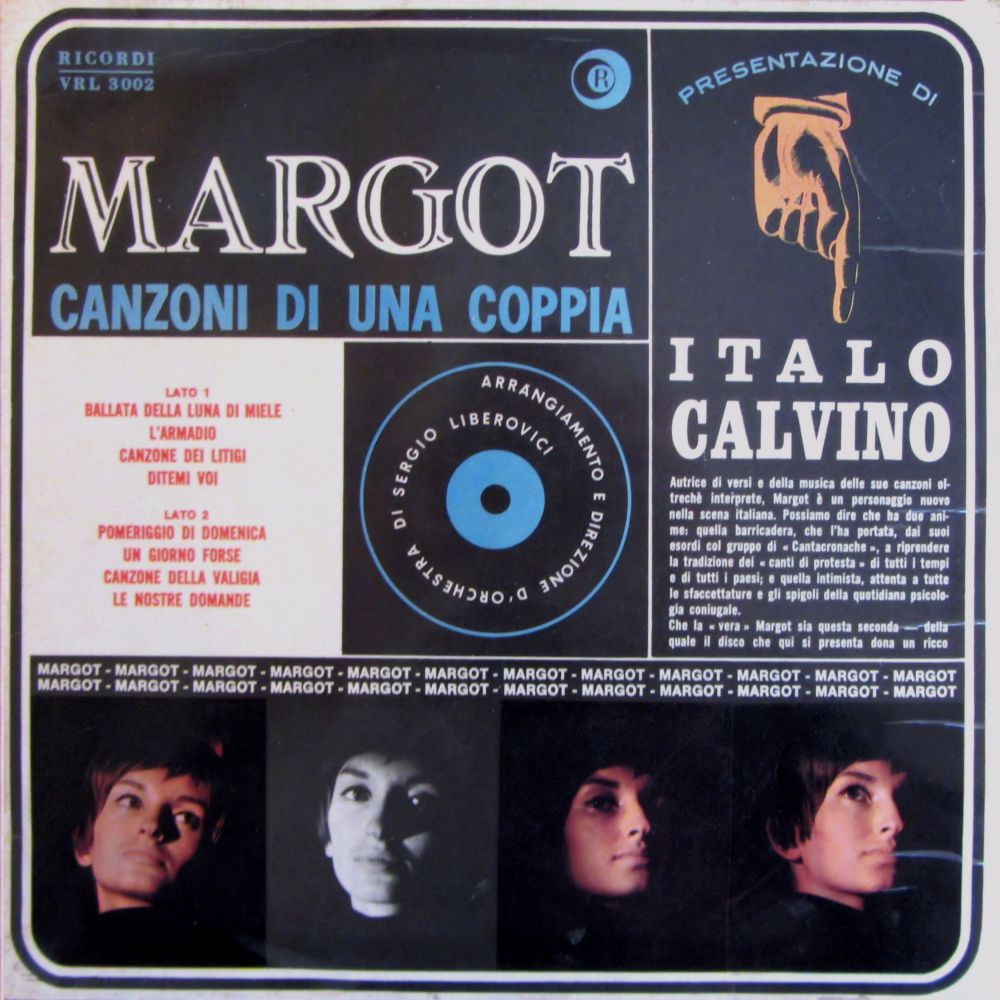Il debutto solista di Margot, a un anno dallo scioglimento del Cantacronache, si aprì nel segno di una continuità, ricevendo il sostegno di Franco Fortini e dello stesso Calvino, che pure avevano contribuito attivamente alla precedente esperienza del collettivo. Nel 1963 usciva Canzoni di una coppia, primo LP che non inaugurò solo l’inizio del nuovo percorso musicale di Margot ma rappresentò uno dei primi album pubblicati in Italia da una cantautrice (Giovanna Marini avrebbe debuttato da solista solo due anni dopo).